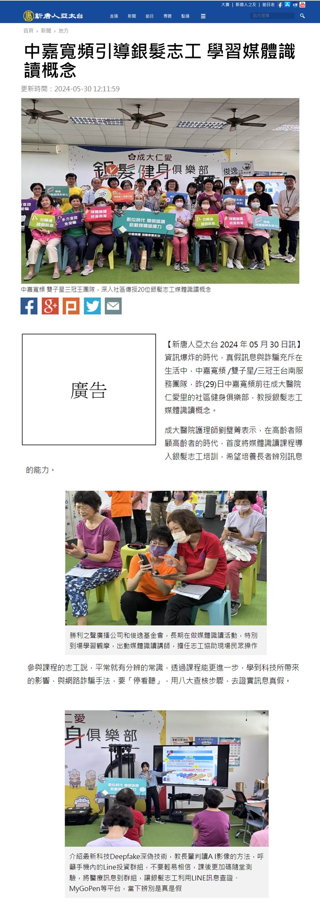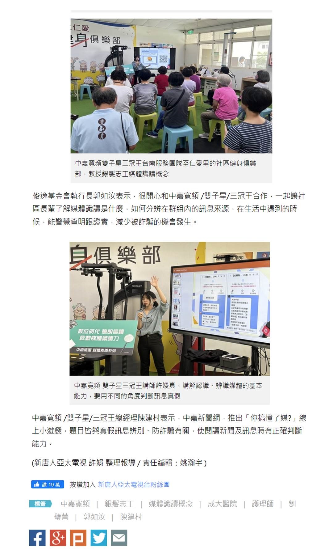 む新唐人亞太台め中嘉寬頻引導銀髮志工 學習媒體識讀概念::俊逸文教基金會::