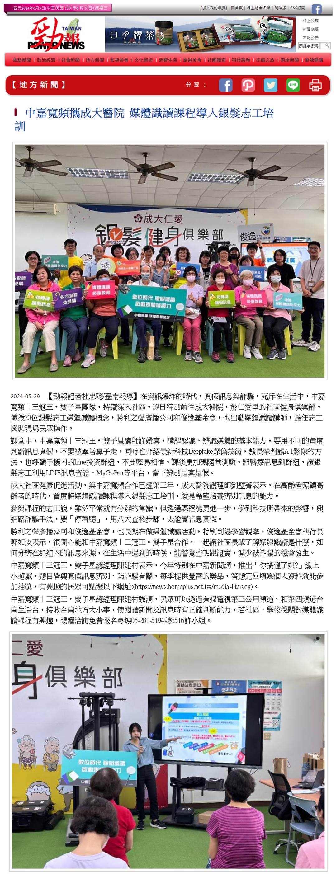 む勁報め中嘉寬頻攜成大醫院 媒體識讀課程導入銀髮志工培訓::俊逸文教基金會::