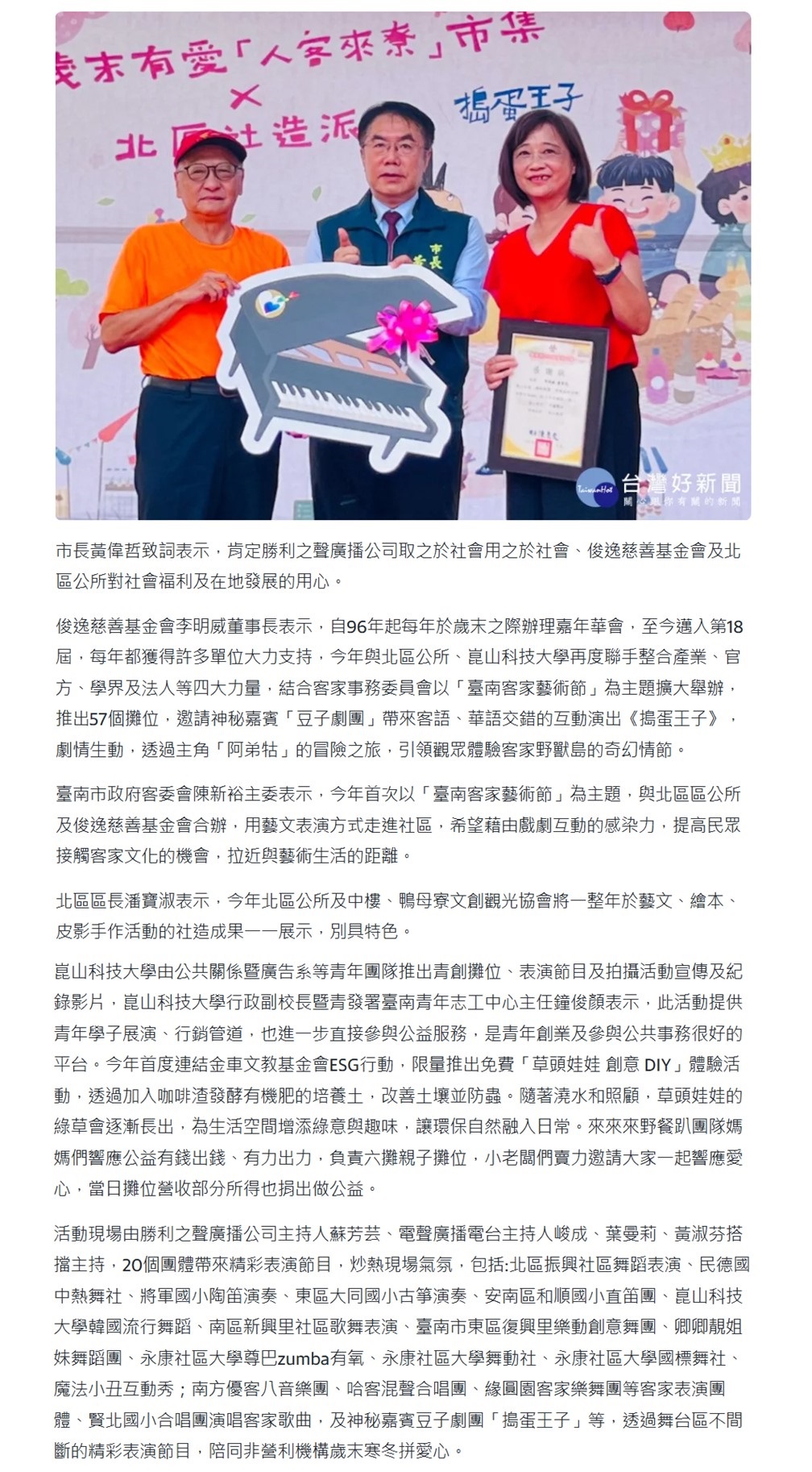 むYAHOO!新聞め歲末有愛「人客來尞」市集暖心開幕 融入客家藝術節熱鬧登場::俊逸文教基金會::