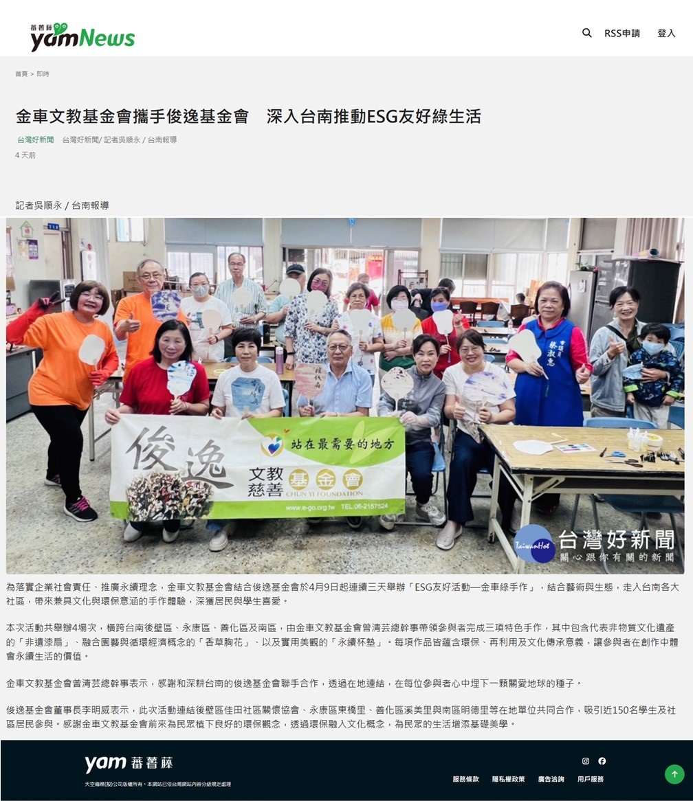 む蕃薯藤新聞網め金車文教基金會攜手俊逸基金會 深入台南推動ESG友好綠生活::俊逸文教基金會::