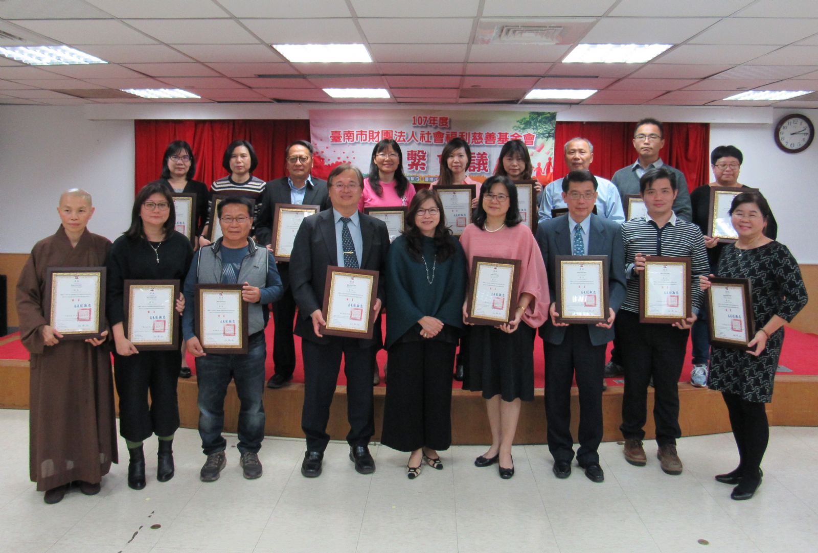 此次接受表揚共有35間基金會,分別在106年的業務評核中,榮獲優等及甲等的成績,其中優等獎共18間包括俊逸基金會、林澄輝基金會、佛教觀音村基金會、惠祺基金會、王趁基金會、基督教青年會基金會、明輝基金會、榕華基金會、朝興基金會、母佑會基金會、侯博明基金會、天主教美善基金會、噶瑪噶居蔣揚基金會、蓮心園基金會、慶美基金會、慈揚基金會、樂扶基金會以及私立錠嵂藍鵲基金會等,另有甲等獎秀峰公記慈善會等17間。