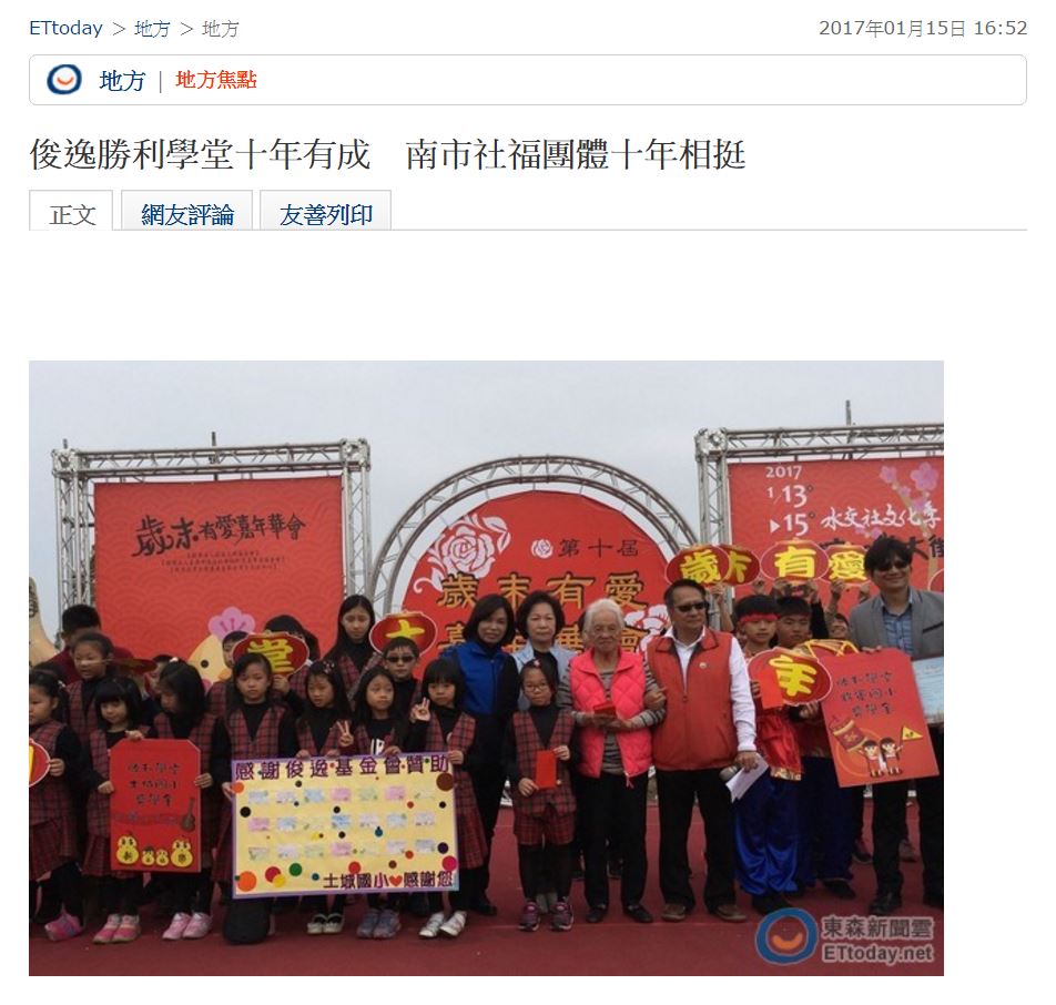 【ETtoday 東森新聞雲】俊逸勝利學堂十年有成 南市社福團體十年相挺::俊逸文教基金會::