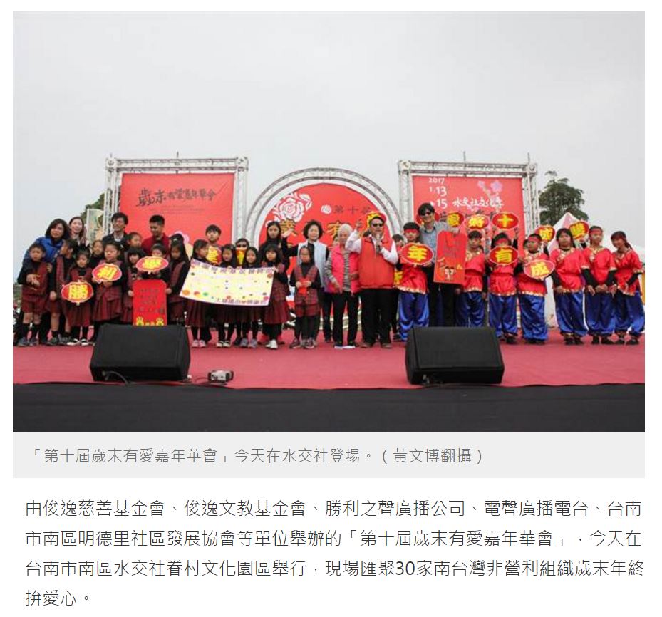 【中時電子報】歲末有愛嘉年華會 南市水交社登場::俊逸文教基金會::