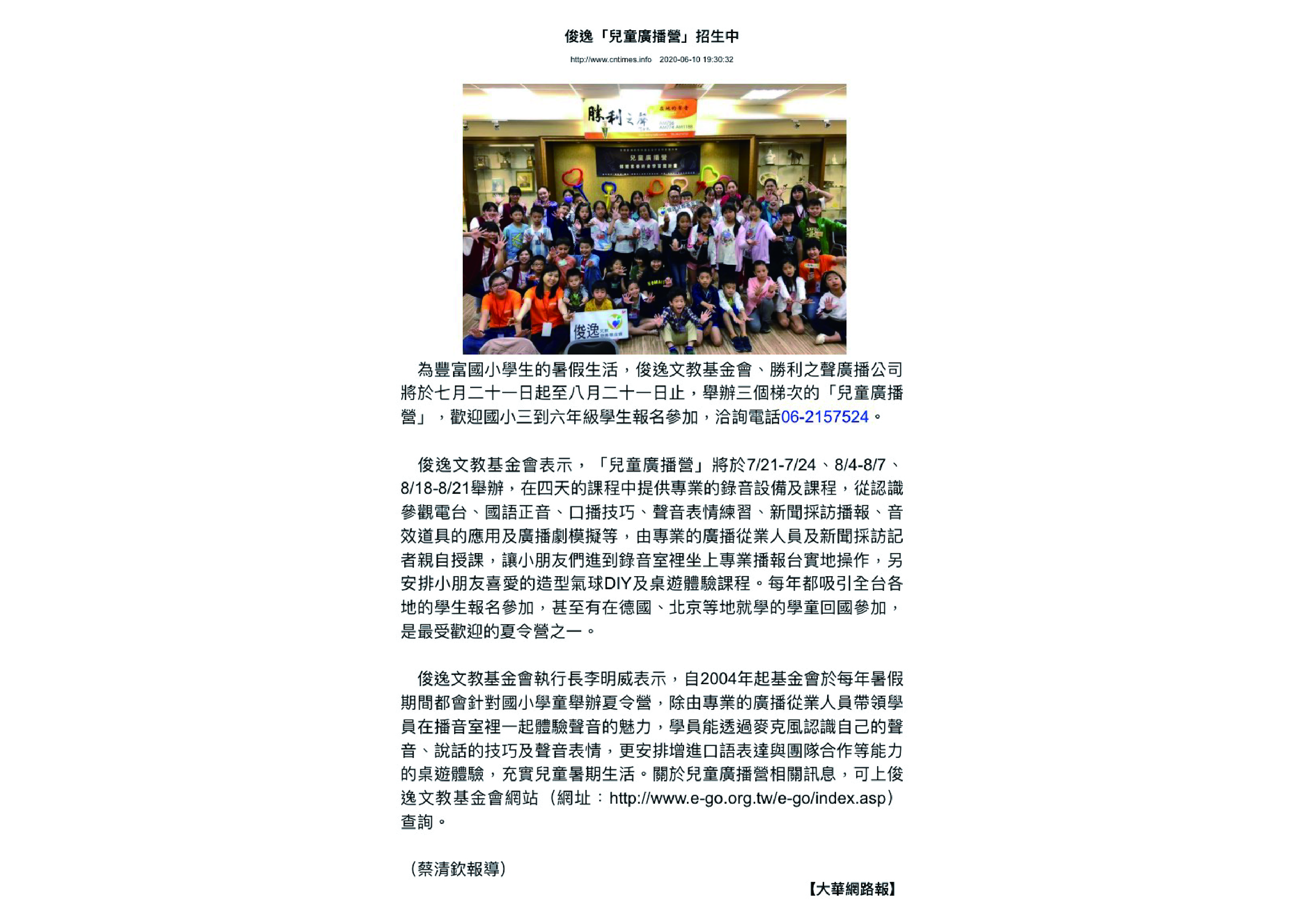 大華網路報 俊逸「兒童廣播營」招生中::俊逸文教基金會::
