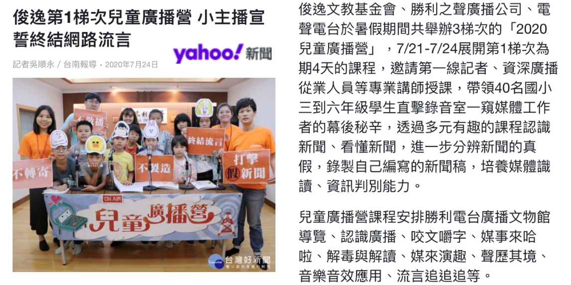 Yahoo奇摩新聞 俊逸第1梯次兒童廣播營 小主播宣誓終結網路流言::俊逸文教基金會::