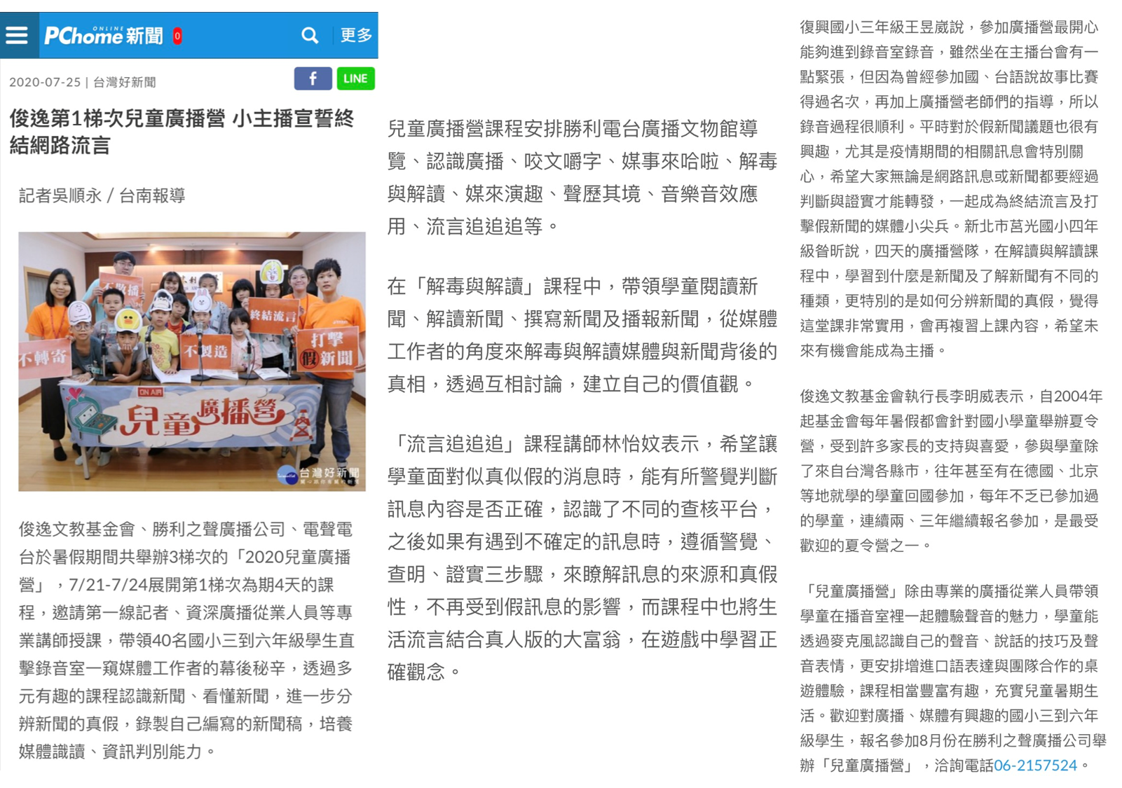PChome政府消息新聞 俊逸第1梯次兒童廣播營 小主播宣誓終結網路流言::俊逸文教基金會::