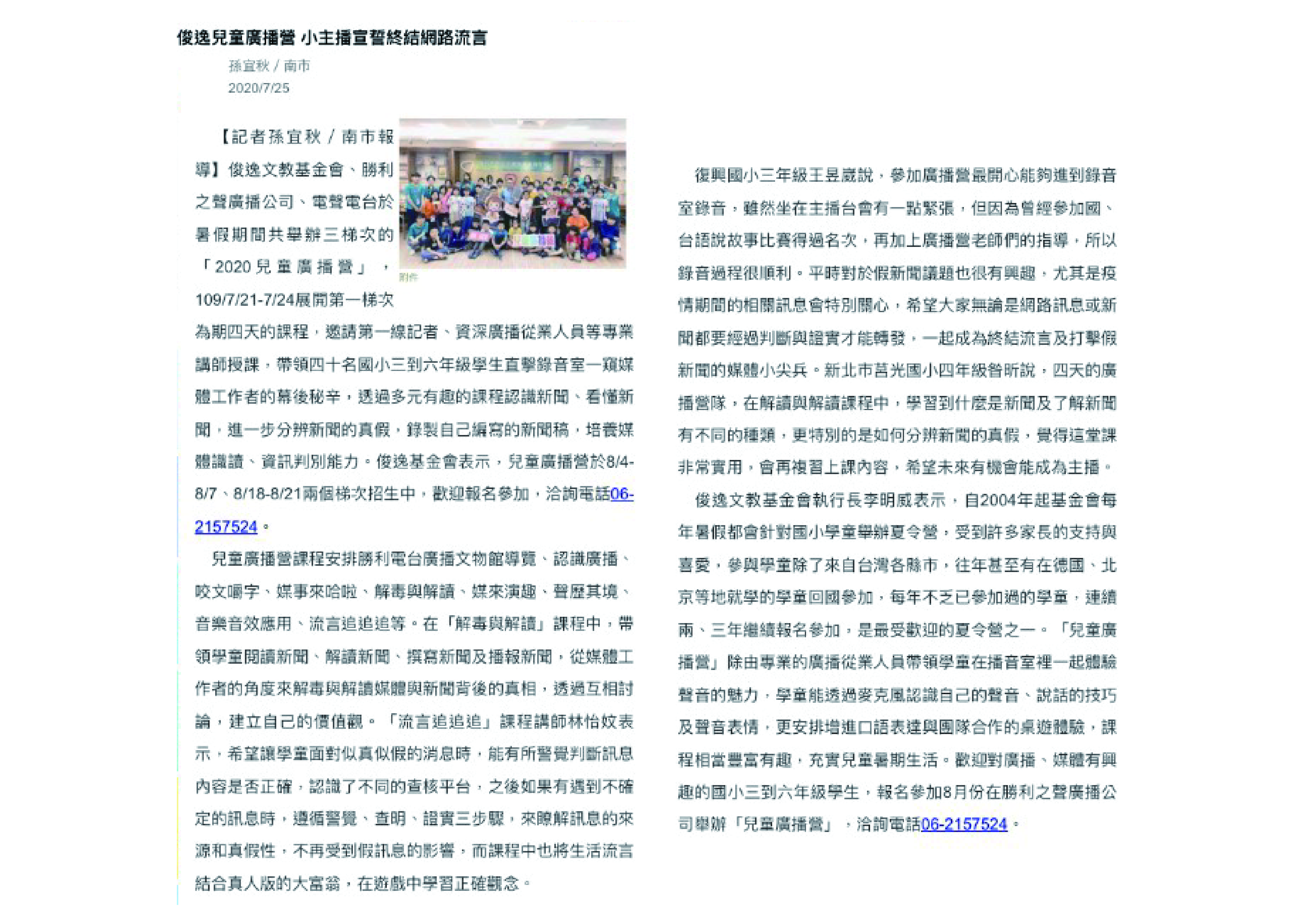 民時新聞 俊逸兒童廣播營 小主播宣誓終結網路流言::俊逸文教基金會::