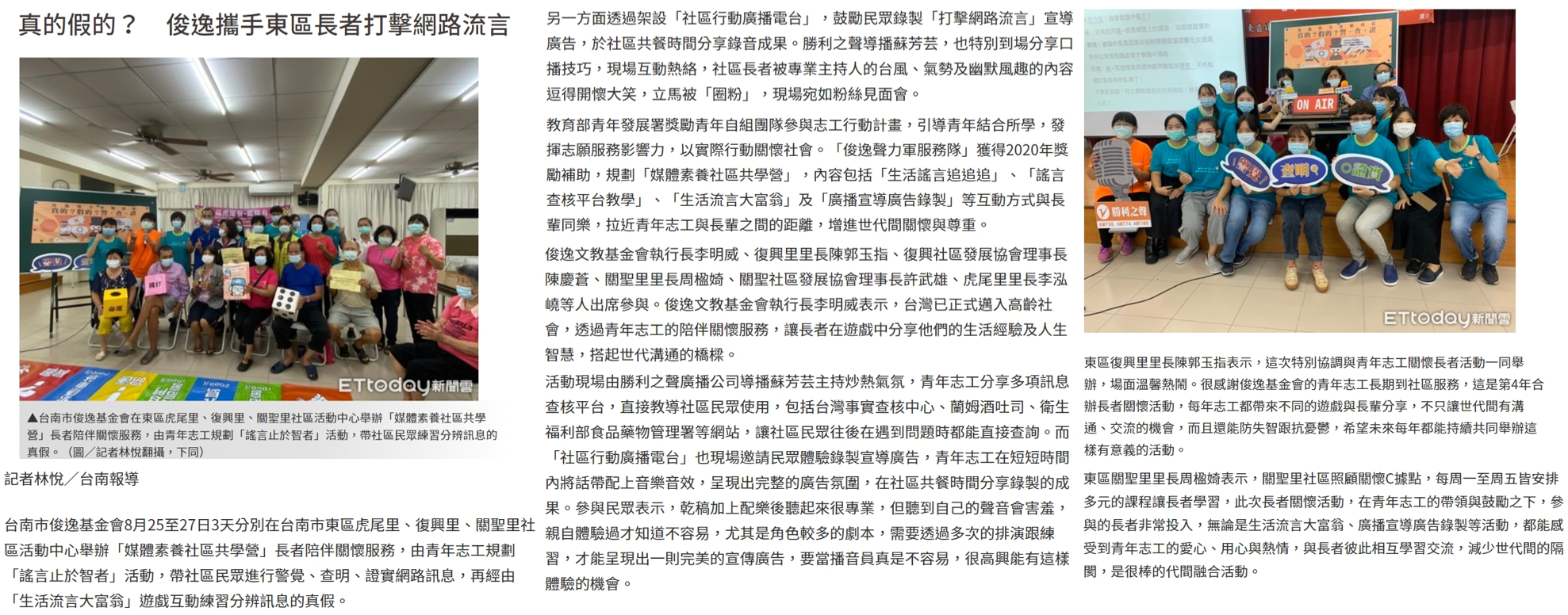Ettoday新聞雲 真的假的? 俊逸攜手東區長者打擊網路流言::俊逸文教基金會::