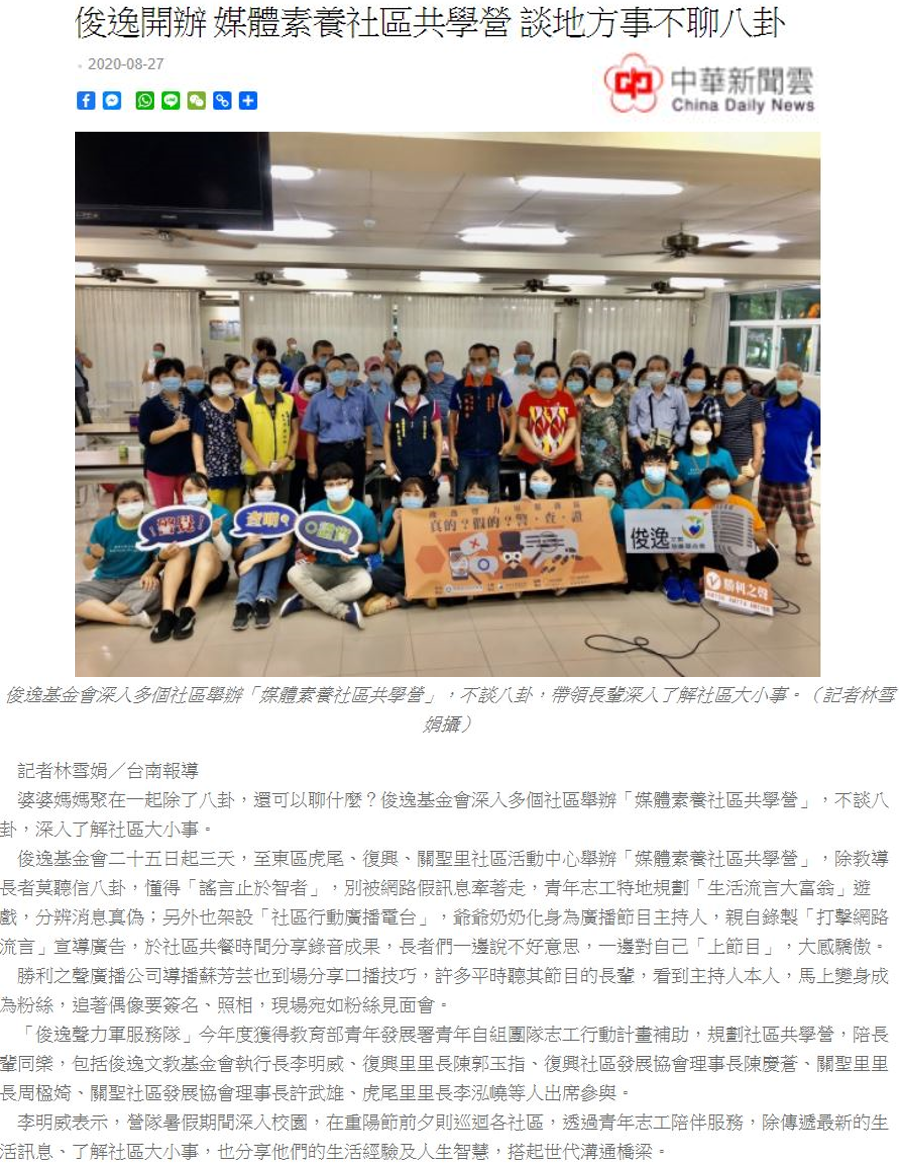 中華新聞雲 俊逸開辦 媒體素養社區共學營 談地方事不聊八卦::俊逸文教基金會::
