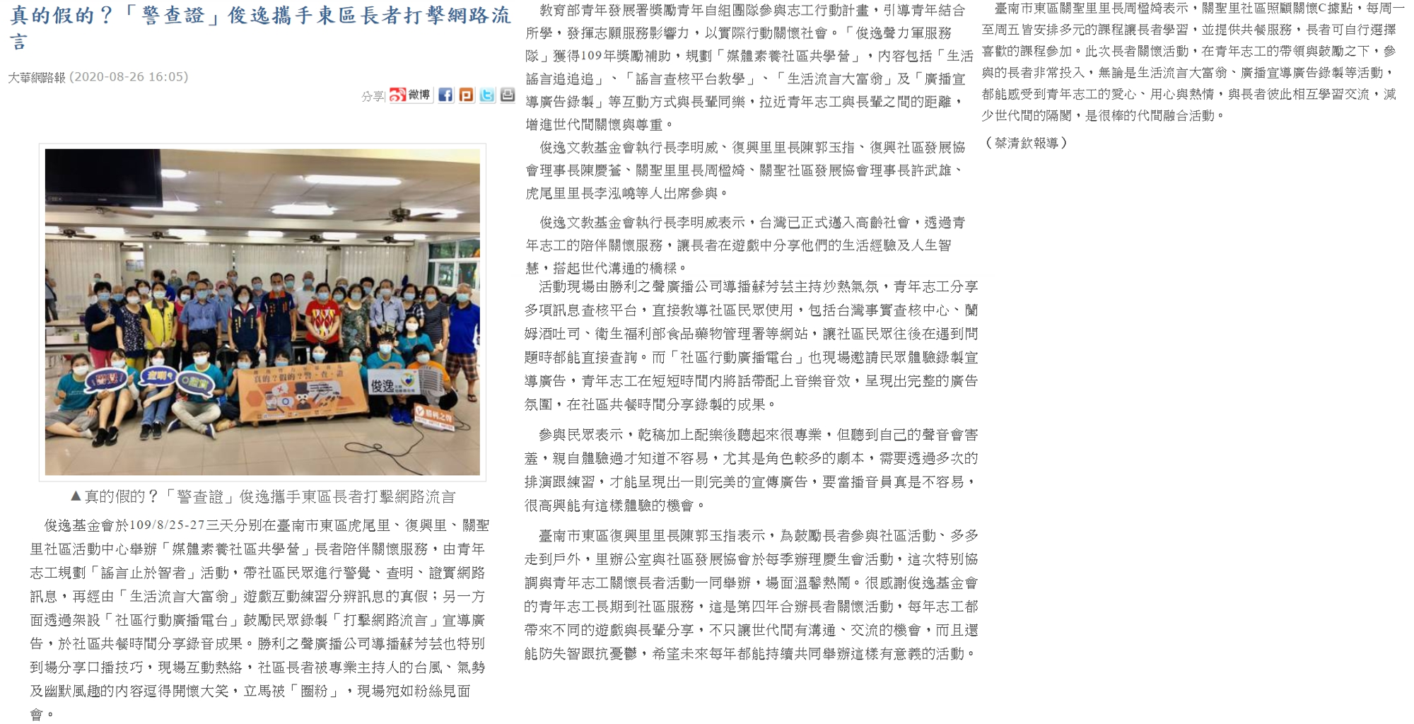 sina新浪生活新聞 真的假的?「警查證」俊逸攜手東區長者打擊網路流言::俊逸文教基金會::