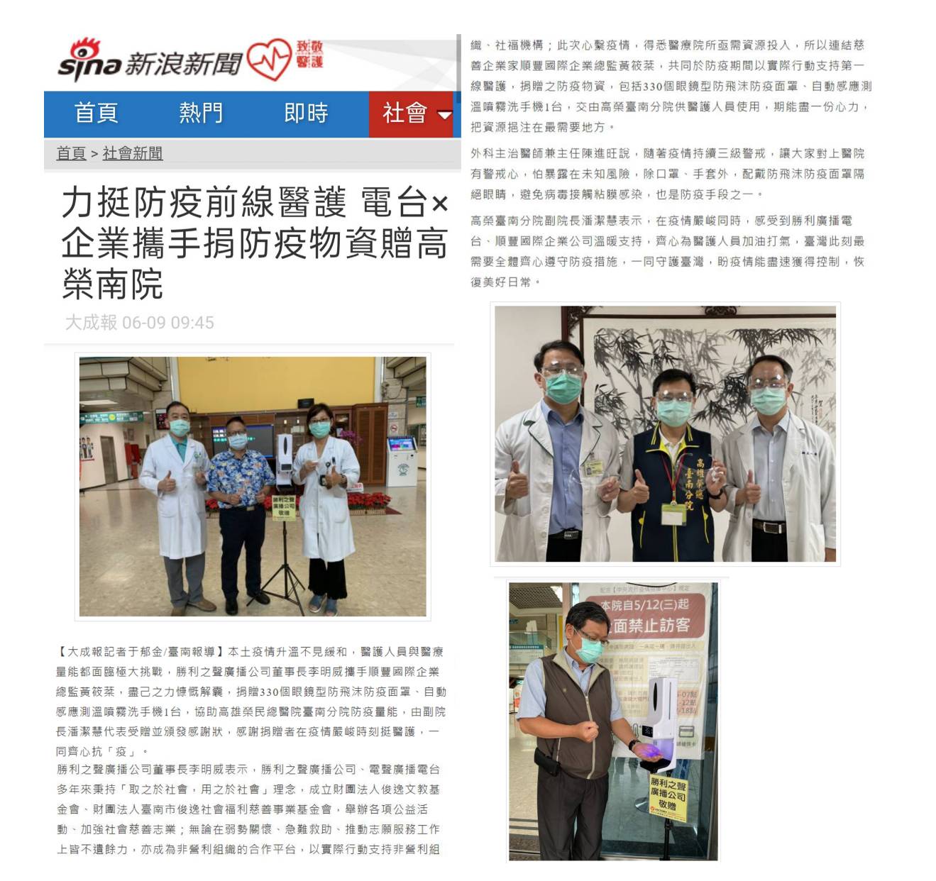 む新浪新聞め力挺防疫前線醫護 電台×企業攜手捐防疫物資贈高榮南院::俊逸文教基金會::