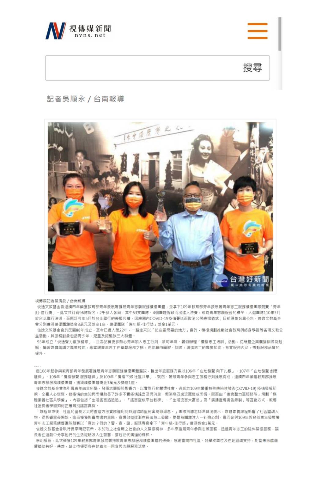 文章出處 : 俊逸文教基金會推展青年參與志願服務有成 連續四年獲獎 (nvns.net)