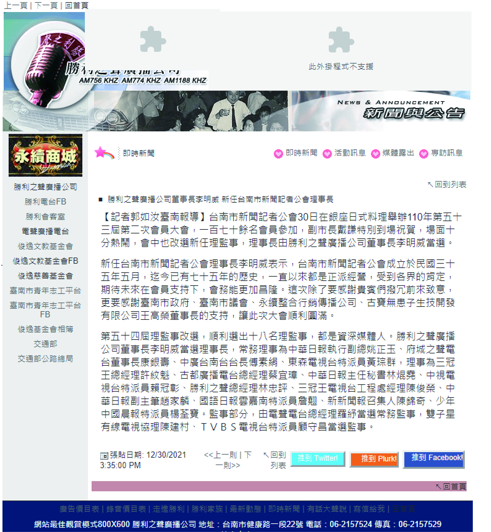 む勝利之聲め勝利之聲廣播公司董事長李明威 新任台南市新聞記者公會理事長::俊逸文教基金會::