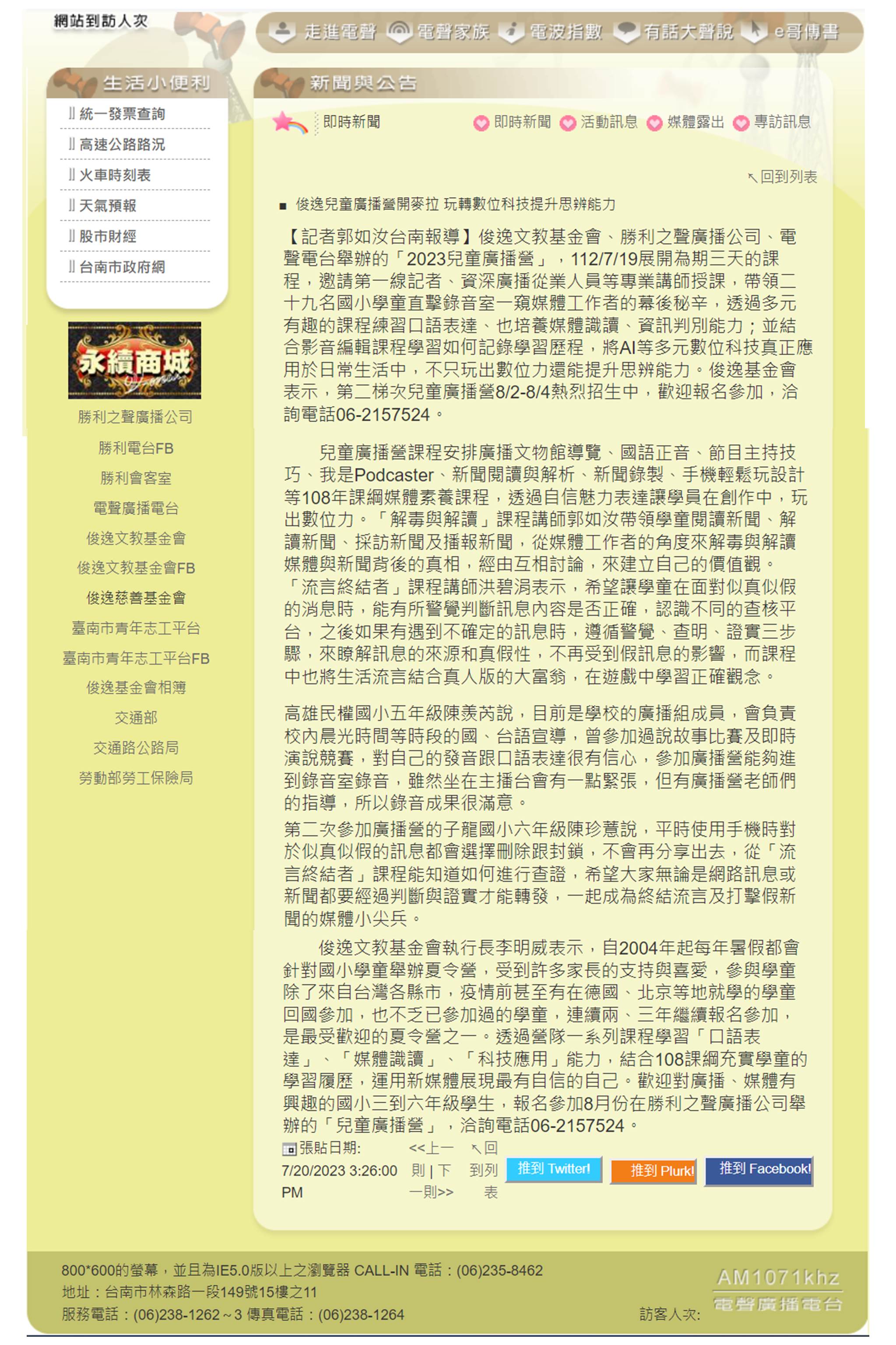 む電聲電台め俊逸兒童廣播營開麥拉 玩轉數位科技提升思辨能力::俊逸文教基金會::