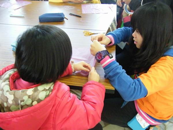 我個人在這次的營隊中,有一個很棒的學習體驗,就是可以就近觀察「人」,對於學護理的我而言,觀察別人也是一項非常重要的課題,本次營隊採小隊制並有分組競賽,而在遊戲競賽的過程中,我發現我們隊上的小朋友,對於遊戲好像並沒有很大的勝負欲。當他們看著別隊一直得分時,雖然會自嘲的說,我們都沒有分數,可是真要他們為了得分而努力時,好像又不會很積極的去做。另外在錄製廣播稿的時候,我發現我們這隊的小朋友都屬於比較害羞的類型,在每一隊都至少有一名小朋友上去錄音的時候,我們這隊卻連一個代表都沒有,隊上小朋友紛紛表示自己會害羞,不然就是表示站至台前很害怕之類的。我則不厭其煩的告訴小朋友,凡事都有第一次,問題只在於你願不願意。在第一天課程結束後,我和其他兩名隊輔就開始發想如何提振隊上士氣,好讓他們可以更積極的參與活動,像是改變策略,調整成整組人馬一起上台,有助幫害羞的小朋友壯壯膽;同學間如果有膽量上台爭取好表現的,則透過全組大聲呼喊隊呼等激勵方式,我想團隊合作能力也是未來不可或缺的軟實力之一,從小能好好培養總是好事一件,這也是我們營隊所樂觀其成的。