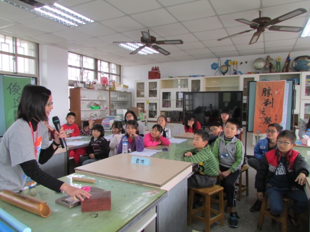另外,我也擔任教學組小老師,我所負責的課程有「口播稿錄製」,讓小朋友擔任小記者寫下介紹家鄉校園特色的口播稿並錄音,及「廣播劇大車拚」帶著小朋友認識生活周遭的東西就可以拿來製作出廣播劇中的音效,例如用綠豆與衛生紙的捲筒能發出下雨的聲音,鐵片能發出打雷的聲音。