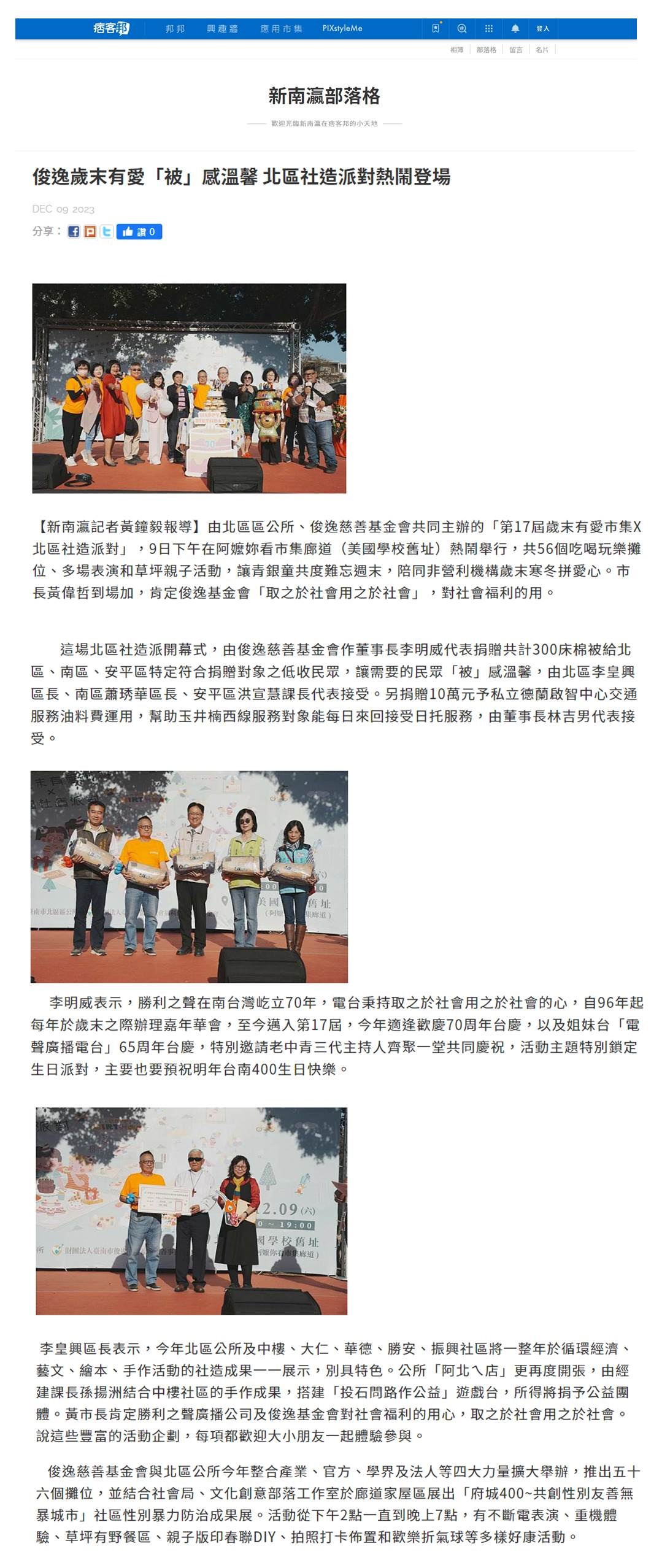 む新南瀛部落格め俊逸歲末有愛「被」感溫馨 北區社造派對熱鬧登場::俊逸文教基金會::