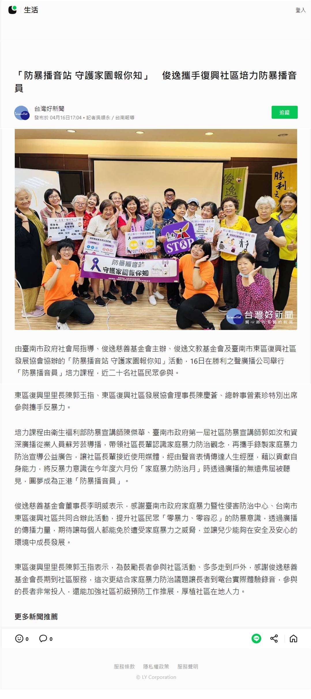 むLINE TODAYめ「防暴播音站 守護家園報你知」 俊逸攜手復興社區培力防暴播音員::俊逸文教基金會::