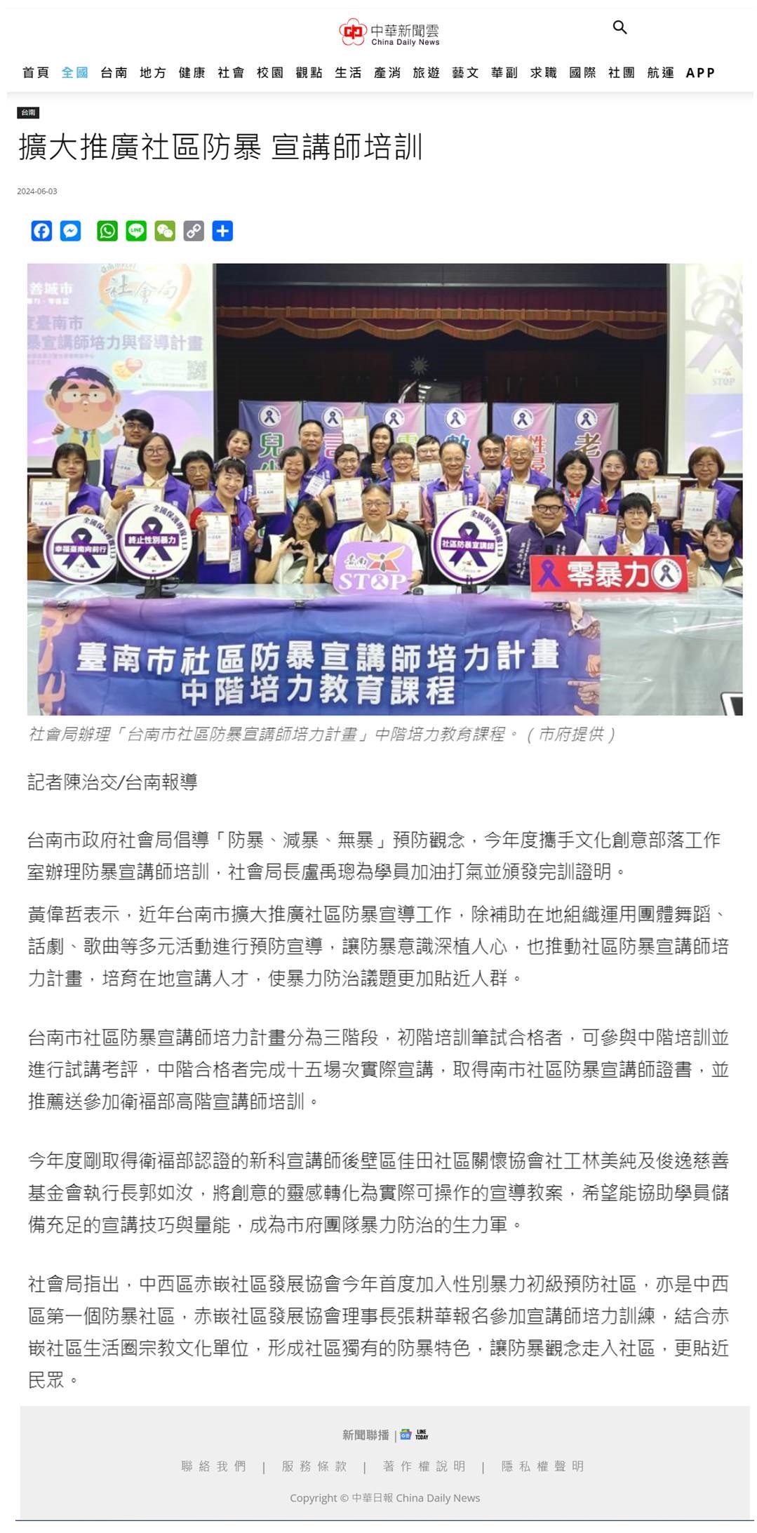 む中華新聞雲め擴大推廣社區防暴 宣講師培訓::俊逸文教基金會::