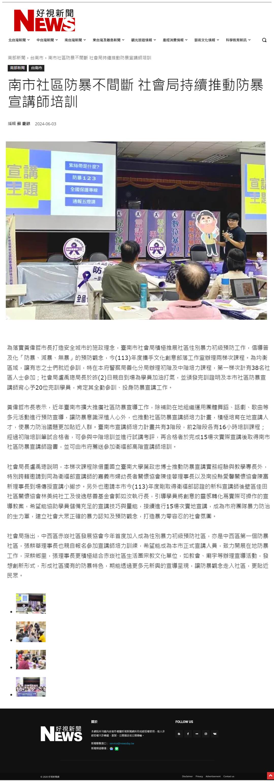 む好視新聞め南市社區防暴不間斷 社會局持續推動防暴宣講師培訓::俊逸文教基金會::