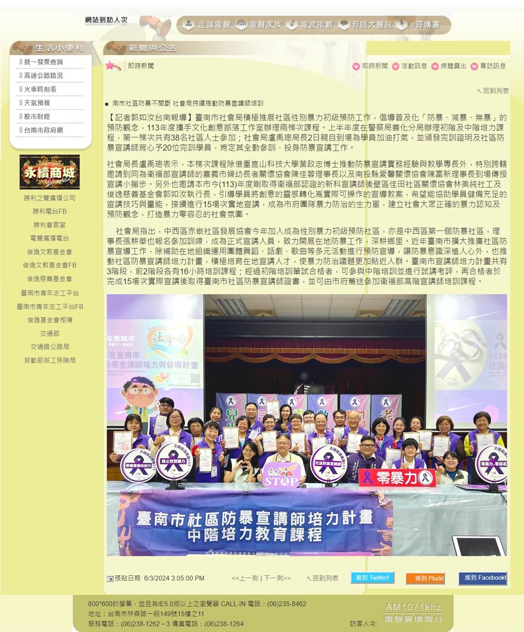 む電聲電台め南市社區防暴不間斷 社會局持續推動防暴宣講師培訓::俊逸文教基金會::