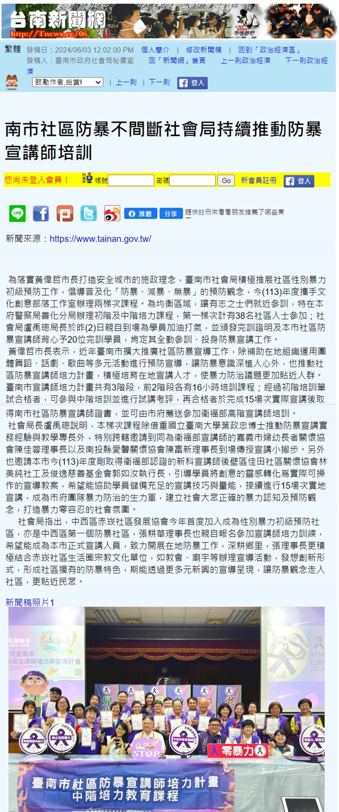 む台南新聞網め南市社區防暴不間斷社會局持續推動防暴宣講師培訓
