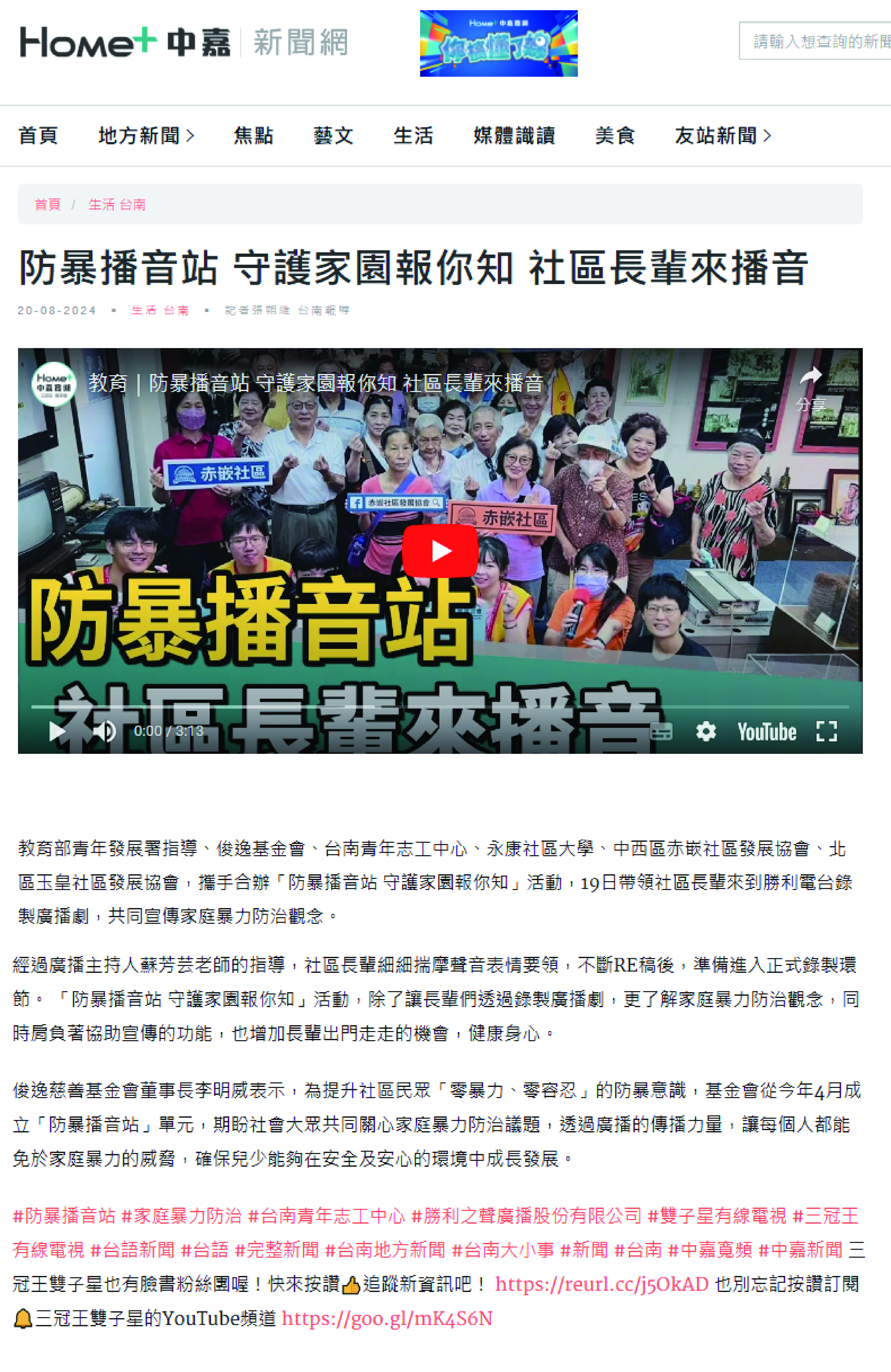 む中嘉新聞網め防暴播音站 守護家園報你知 社區長輩來播音::俊逸文教基金會::