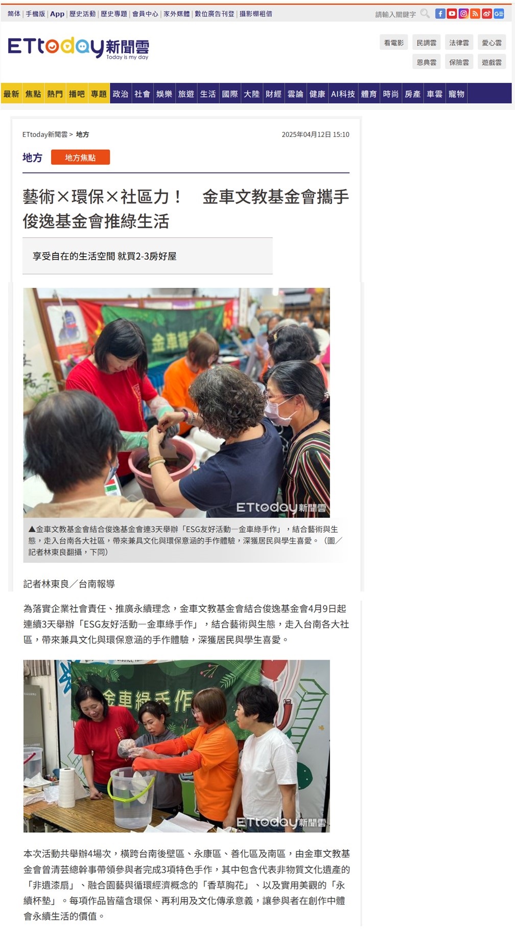 むETtoday新聞雲め藝術×環保×社區力! 金車文教基金會攜手俊逸基金會推綠生活::俊逸文教基金會::