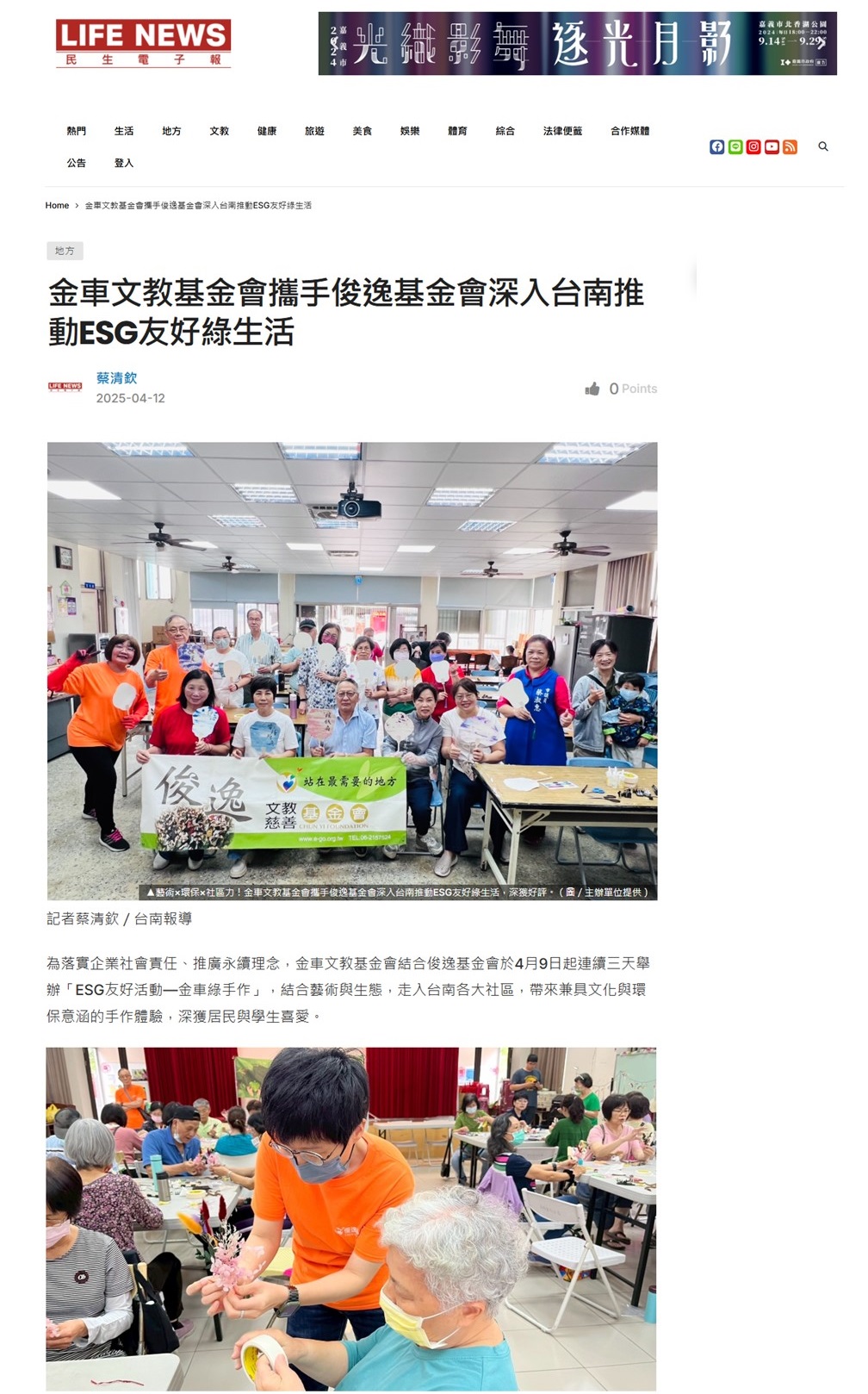 む民生電子報め金車文教基金會攜手俊逸基金會深入台南推動ESG友好綠生活::俊逸文教基金會::