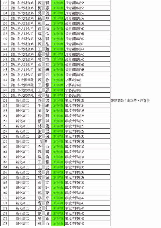 329志工錄取名單如下:(惟因應個資法,僅公告志工部分姓名。若無法確定自己是否有被錄取,歡迎來電詢問06-2157524分機43)
